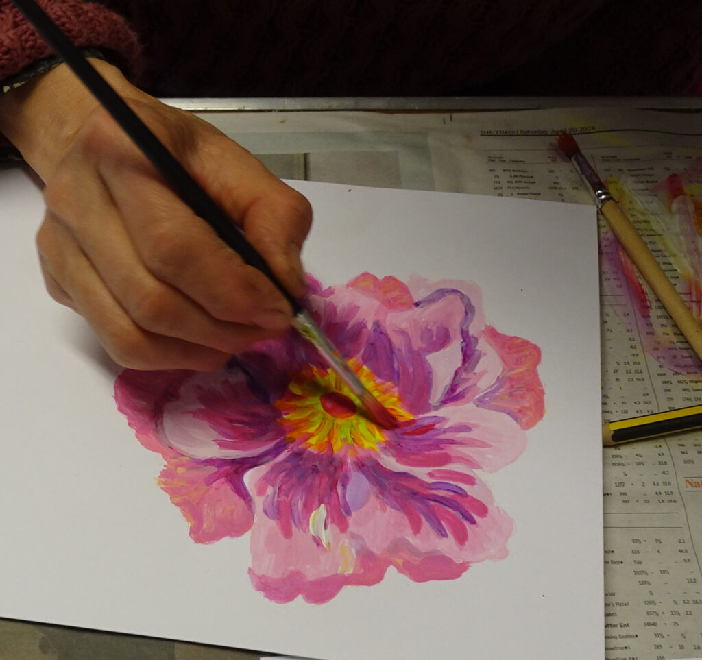 The Exploring Art group made paintings of flowers to inspire the other participants, and ran flower painting workshops throughout the summer of 2024 which were open to all.